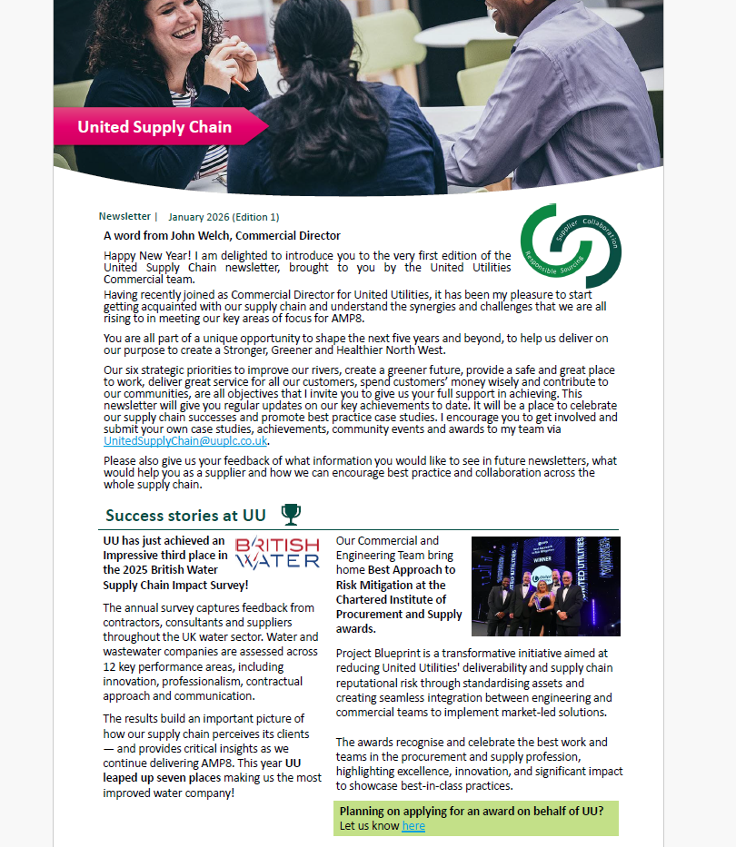 British Water Success United Utilities have just achieved an impressive third place in the 2025 British Water Supply Chain Impact Survey. 05/12/2025 14:33