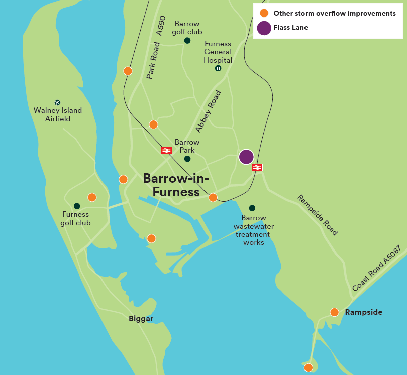 Flass Lane is one of our flagship projects to improve water quality in Barrow. We’re starting work now to prepare the way for new underground storage to complement the existing treatment infrastructure and help to further reduce stormwater spills.
